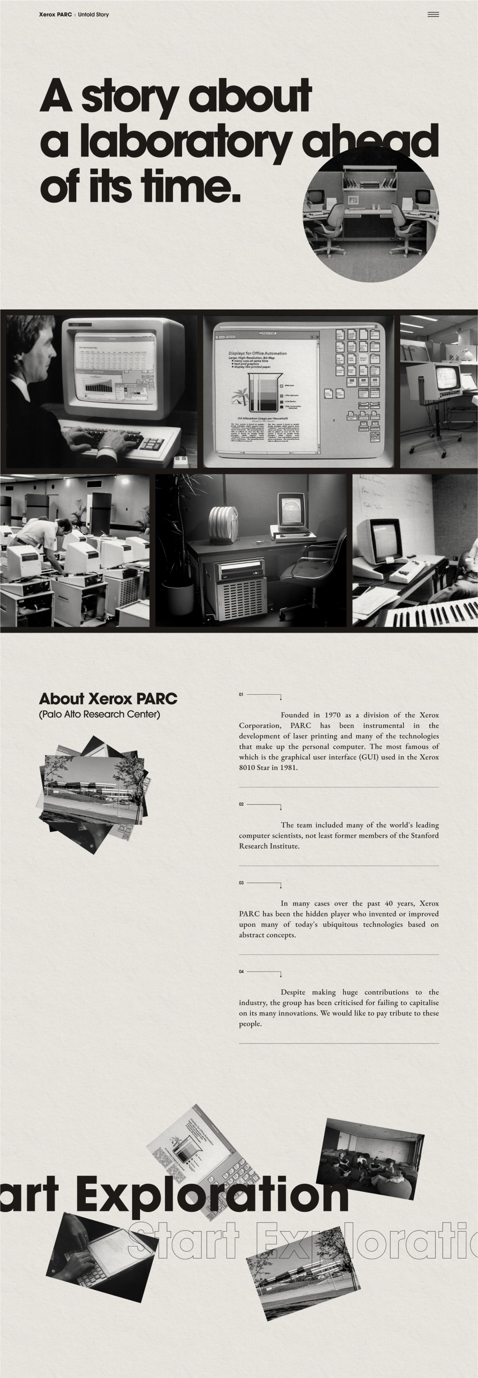 Our project celebrating Xerox PARC's legacy through innovative, scroll-powered storytelling and 80s-inspired design earned us a prestigious blue ribbon award from Behance. This concise, visually engaging presentation highlighted the pioneers of computing, blending historical insight with modern interactive experiences.